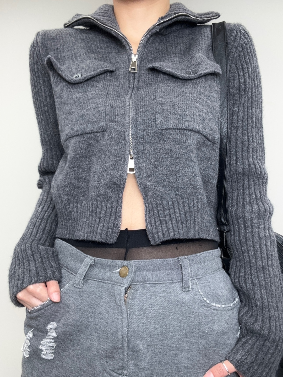 Charcoal Knit Zip